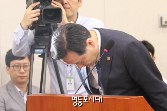 8일 국회 법제사법위원회 전체회의에 출석한 김현웅 법무부 장관이 진경준 검사장의 구속과 관련 “국민께 커다란 충격과 심려를 끼쳐드려 진심으로 사죄의 말씀을 드린다. 저 스스로도 한없이 부끄럽고 참담한 심정이다”며 고개를 숙였다.