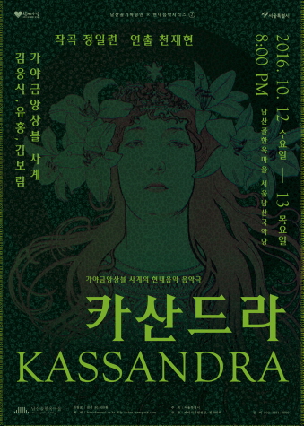 10월 12일(수)과 13일(목), 서울남산국악당에서 남산골기획공연x현대음악시리즈2 <카산드라>(그리스신화에 등장하는 예언자)가 한국의 전통 악기를 통해 새로운 현대음악극을 제시한다. 현대음악극 <카산드라>에서는 카산드라가 지닌 초월적인 재능과 비운의 삶이 정일련의 음악과 새로운 목소리를 통해 더욱 치밀하게 묘사되고 극적으로 표현된다. 공연의 연출을 맡은 천재현 예술감독의 연출로 펼쳐지는 카산드라는 “능력과 저주 사이에 살았고, 미래를 현재에 살아낸 사람”이라며, 어떤 의미에서는 “우리가 카산드라”일 수 있다. 2014년 초연이후 재공연되는 이번 작품에는 천재현 연출을 필두로 카산드라의 메시지를 더욱 직관적으로 무대에 담아낸다. 움직이는 벽으로 구성한 과감한 무대와 드라마틱한 영상은 그 효과를 더할 것이다. 본 공연에는 국내외 작곡가들과 협업하며 한국음악의 새로운 지평을 넓혀가는 가야금앙상블 사계와 타악 연주자 김웅식, 대금 연주자 유홍이 출연하며, 소리꾼 김보림이 비운의 여사제 카산드라 역을 맡았다. 올해 새롭게 작업을 하게 된 소리꾼 김보림은 호소력 있는 소리와 섬세한 감정표현을 통해 극의 완성도를 높일 예정이다. 자세한 내용은 남산골한옥마을 홈페이지(hanokmaeul.or.kr)를 통해 안내받을 수 있다.