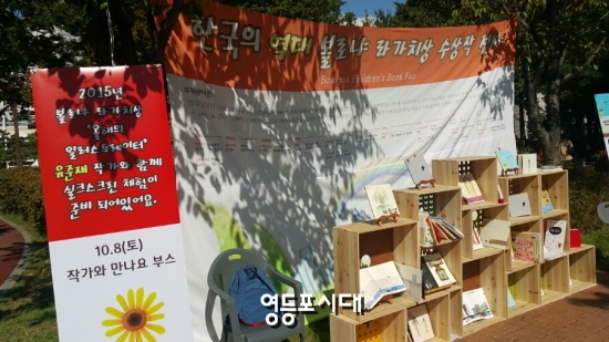 영등포문화재단(대표 송수희) 산하 영등포구립도서관(대림, 문래, 선유, 여의디지털)은 7일부터 8일까지 2일간 영등포구청 앞마당과 당산공원에서 구민과 관계자들이 참여한 가운데 제1회 영등포 북 페스티벌 ‘두근두근 도서관에 반하다’를 영등포구(구청장 조길형) 후원으로 개최했다. 이번 북 페스티벌 ‘두근두근 도서관에 반하다’는 영등포구 21개의 공립도서관과 17개의 작은도서관 관계자들이 직접 프로그램을 기획해, 도서관 안의 전유물로 여겼던 책 놀이를 체험행사로 업그레이드시켜 야외에서 실행한 영등포구 첫 북 축제다. 이틀 동안 진행된 행사와 프로그램을 살펴보면 책 읽는 공간 책 버스와 나는야 숲 속 명탐정(총 6회)을 시작으로 꿈꾸는 동화여행, 동극(금도끼 은도끼), 목걸이 만들기, 북 콘서트(성우들의 라디오드라마), 이야기꾼의 책 공연(평강공주와 온달바보), 저자와의 특별한 만남 등이 구민과 독서가족을 만났다. 이 밖에도 그림책의 노벨상으로 불리는 ‘라가치상 수상작’이 전시되어 우리나라 그림책들의 예술적 가치와 우수성을 생각해 볼 수 있는 계기를 만들어 주었으며 영등포문화재단 캐릭터 색칠하기, 수제노트 예쁘게 만들기 등의 체험활동이 관심을 끌었다.