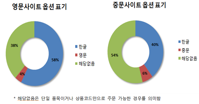 한 예로 미국인 A씨는 영문버전의 국내 오픈마켓 사이트에서 Air-Conditioner을 검색, 제품을 구입했으나, 시원하지 않아 확인해 보니 해당제품은 에어컨이 아니라 냉풍기라는 안내를 받았다. 제품명과 달리 상세설명에는 냉풍기라고 한글로만 표기되어 있었고, 구입처에서는 제품에 문제가 없기 때문에 반품이 어렵다는 답변을 받았다. 서울시전자상거래센터에서는 해외 소비자들을 위해 외국어로 쇼핑플랫폼을 운영하고 있는 4개 업체 글로벌사이트(영/중)의 100개 상품을 모니터링 한 결과, 판매되는 상품에 대한 상세정보가 한글로만 표시되어 있어 외국인 소비자가 쇼핑몰 이용 시 충분한 정보를 제공받지 못하고 있는 것으로 나타났다고 밝혔다. 영문사이트의 경우 총 52개 상품 중 58%에 해당하는 30개의 상품이 사이즈 등의 옵션 선택이 모두 한글로만 되어 있었고, 중문사이트의 경우 총 48개 상품 중 40%에 해당하는 19개의 상품의 옵션이 한글로만 표기되어 있었다. 해외에서 가장 인기 있는 제품인 ‘화장품’의 경우에도 마찬가지였다. 피부 타입 등을 선택하는 옵션 선택 표시가 한글로만 표기되어 있어 외국인 소비자가 제품을 구매하는 과정에서 오인/혼동의 우려가 있었다. ‘낚시성’ 상술도 문제였다. 가장 인기 있는 제품 사진을 노출시키고 가격은 다른 최저가 상품의 가격을 제시해 실제 구매할 경우 가격이 추가되는 일명 '낚시성' 판매로 인한 피해 가능성도 예상된다. 또한, 일부 사이트에서 상품평이 많은 제품이라고 표시해 소비자 만족이 높은 것처럼 홍보했으나, 실제로는 외국인 소비자가 작성한 후기가 아닌 국내사이트의 이용후기를 한글 그대로 노출시켜 외국인 소비자에게는 실질적인 도움이 되지 못하는 경우도 있었다. 국내 글로벌사이트를 이용하는 외국인소비자의 증가추세에 따라 쇼핑몰을 운영하는 사업자들은 해외소비자들이 편리하게 이용할 수 있는 온라인 쇼핑 환경을 구축해야 하며, 외국인 소비자들이 상품을 선택할 수 있는 기준이 되는 상세정보를 정확하게 알려 정보부족으로 인해 발생하는 소비자 피해를 예방하는데 노력을 기울여야 할 것이다. 이를 위해 서울시에서는 앞으로 글로벌사이트에 대해 정기적으로 모니터링을 실시하는 한편, 외국인 소비자에게 오인/혼동을 줄 수 있는 사이트에 대해서는 정확한 정보가 제공될 수 있도록 지도할 예정이다. 천명철 서울시 민생경제과장은 “국내 사이트에서 제품을 구매한 외국인 소비자들의 경우 판매자에게 제품문의, 교환, 반품 등을 요청할 경우 언어문제로 국내 소비자들처럼 적극적인 의사표현 및 원활한 의사소통이 어려운 만큼 해당언어로 정확한 상품정보가 제공될 수 있도록 사업자 및 사이트 관리자에게 지속적으로 요청하겠다.”고 말했다