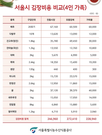 서울시농수산식품공사, 김장 비용 조사결과 발표