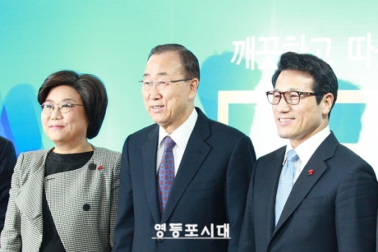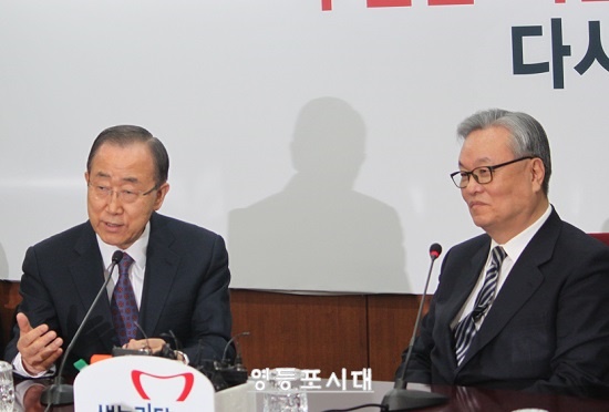 새누리당을 먼저 방문한 반기문 전 유엔사무총장은 인명진 비상대책위원장과 정우택 원내대표를 만나 “국민은 정치인들에 의해 생긴 실망과 분노를 새누리당에서 잘 인식하고 좀 더 혁신하고 새로 태어나기를 기대하고 있다고 생각한다”고 밝히고 “많은 국민이 패권정치, 패거리 정치에 염증과 분노를 일으키고 있는데 정치 지도자들이 대오각성하는 마음으로 뭉쳐야 한다”며 정치혁신과 통합을 강조했다.