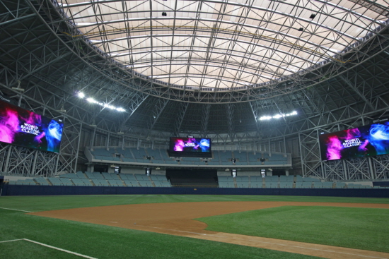 고척스카이돔에 쌍둥이 전광판이 첫선을 보였다.