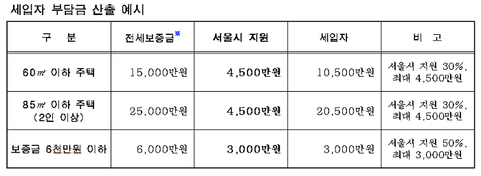 지원 대상 주택은 순수 전세주택과 보증부월세주택(반전세)으로, 보증금 한도는 1인 가구의 경우 순수 전세의 전세금 또는 보증부월세의 기본보증금과 전세전환보증금의 합이 2억 2천만 원 이하, 2인 이상의 가구의 경우 최대 3억 3천만 원 이하의 주택이다. 다만 보증부월세의 경우 월세금액 한도는 최대 50만 원까지다.