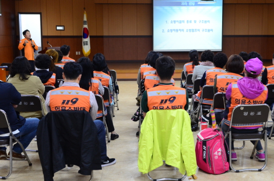 18일 오후 영등포소방서 4층 대강당에서 의용소방대(남, 여)대장 등 의용소방대원 정기교육이 시행됐다.