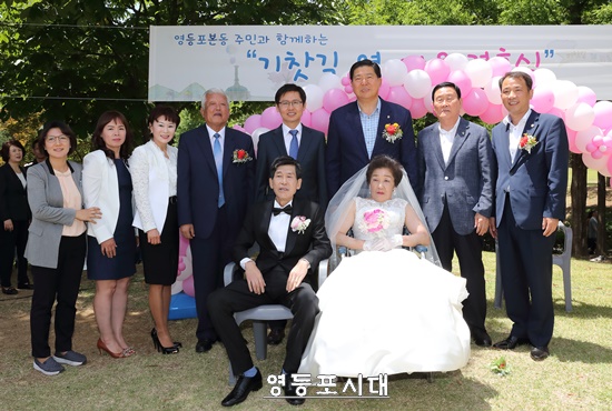 이날 결혼식은 저장강박증으로 가옥에 재활용품을 가득 모아 두는 등 생활이 어려워 결혼식을 올리지 못한 부부를 위해 지역사회보장협의체 및 나눔이웃이 발 벗고 나서면서 이루어졌다. 결혼식을 원하는 두 부부를 위해 가옥정리와 함께 마을 결혼식을 함께 하기로 하고 통합사례관리 대상자로 선정한 후 5월 트럭 7대 분량의 재활용품을 정리하여 가전제품, 가구지원, 집수리 및 가구 소득 등 각종 서비스 제공했다. 지역사회보장협의체 및 나눔이웃의 드레스, 턱시도 후원(박씨네 우리옷)과, 축하연주(영등포청소년 오케스트라와 가수 모리슨 호텔), 식장 풍선아트(영등포자원봉사단) 등 재능기부로 진행된 기초수급대상자의 결혼식은 세상에서 가장 아름다운 결혼식으로 기억되기에 충분했다. 특히 일가친척이 없는 두 부부를 위해 조길형 구청장과 김연주 영등포동 동장, 조도승, 김현영 새마을금고 이사장, 김재진 구의원이 신랑측 혼주를, 지상노 영등포본동 마을장터운영진 단장, 경숙현 영등포동 주민자치위원장, 박춘은 행정국장, 박돈규 박시네 우리옷 대표가 신부측 혼주를 대신해 훈훈함을 더했다. 또한, 좋은 이웃들 11기 회원들은 비녀미용실(원장 지상노)에서 오후 7시부터 12시까지 여러 날 부업을 해 모은 돈으로 신랑·신부 하객과 수고를 아끼지 않은 공무관(환경미원)에게 음식을 대접해 잔잔한 감동을 전해주었다. 한편 영등포본동 마을장터운영진은 10(토) 오전 11시부터 오후 3시까지 영등포공원 일대에서 조길형 영등포구청장과 주민, 상인, 지역단체 관계자 등 1,000명이 참석한 가운데 기찻길 옆 마을장터를 개최했다. 주민들의 소통과 어울림 한마당을 통해 마을공동체를 형성하고 지역경제 활성화에 기여할 수 있는 마을장터로 발전시키기 위해 열린 기찻길 옆 마을장터는 주민들의 자발적 참여에 기반 한 민·관이 함께해 그 의미를 더했다. 지상노 영등포본동 마을장터운영진 단장은 “앞으로도 어려운 이웃을 위해 힘이 되는 일들을 찾아 주민들과 함께 진행해 나가겠다”고 밝혔다.