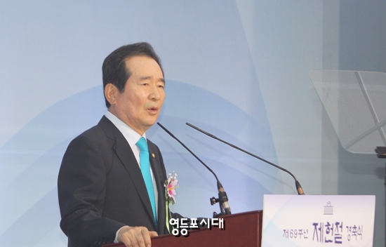 17일 오전 국회에서 열린 제69주년 제헌절 경축식이 이낙연 국무총리, 양승태 대법원장, 김용덕 중앙선거관리위원장, 김이수 헌법재판소장 권한대행 등 5부요인, 주한외교사절을 포함해 사회 각계각층의 주요 인사들이 참석한 가운데 열렸다.