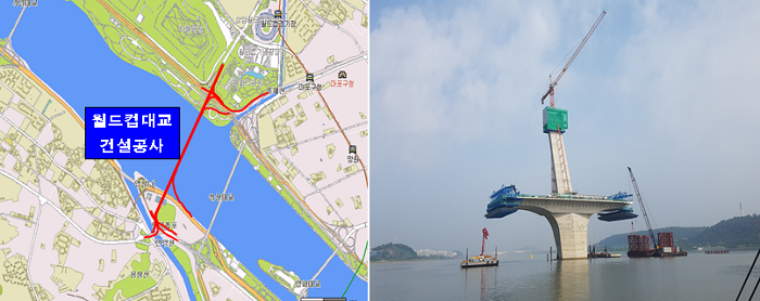 서울시는 마포구 상암동과 영등포구 양평동을 잇는 왕복 6차로, 연장 1,980m의 월드컵대교 건설공사를 오는 2020년 8월 개통예정이다.