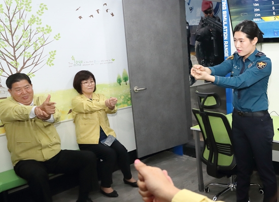조길형 영등포구청장(사진 오른쪽)이 동장들과 함께 경찰체험에 나섰다.