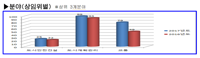 상임위원회별 기준에 따른 민원분야는 ‘도시계획관리’ 99건(21.5%), ‘교통’ 79건(17.1%), ‘교육’ 48건(10.4%) 순으로 나타났다. 자치구 기준에 따른 지역별 민원발생 지역은 ‘송파’ 가 34건(7.4%)으로 1위, ‘강동’ 29건(6.3%), ‘강남’ 25건(5.4%), ‘서초·영등포’가 24건(5.2%) 순으로 나타나 강남 4구에서 전체민원 461건 중 112건을 접수하여 약 25%에 비중을 차지한 것으로 나타났다.