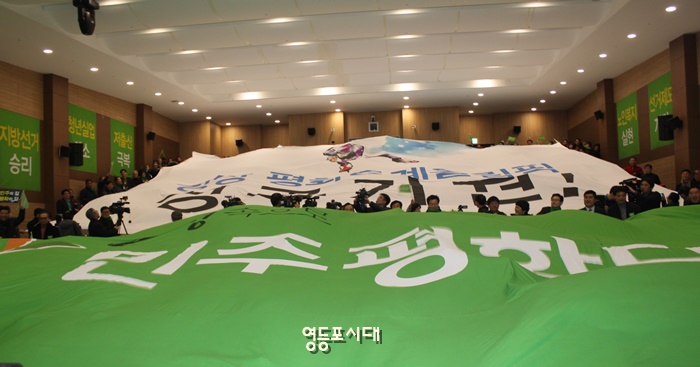 1, 2부로 나누어 진행된 민주평화당 창당대회는 평창올림픽과 민주평화당의 성공을 기원하는 대형 현수막 퍼포먼스를 펼쳐 눈길을 끌었다.
