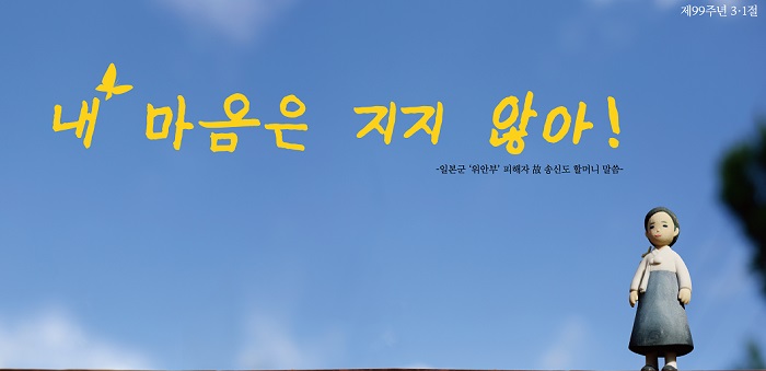 한편 서울시는 제99주년 3.1절을 맞아 일본군 ‘위안부’ 피해자에 대한 관심과 역사 바로 세우기에 동참을 유도하는 “내 마음은 지지 않아” 문구를 담아 서울광장 꿈새김판을 새로 단장한다.