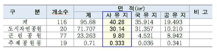 -서울시, 2년 앞 다가온 ‘도시공원 실효제’ 대비 공원 보존‧난개발 예방 대책 발표 - 시 도시공원 83%, 여의도 33배 면적(116개 공원 95.6㎢) 공원 실효 앞둬 - 중앙정부에 ▲국비 50% 지원 ▲국‧공유지 실효 제외 ▲토지소유자 재산세 감면 요청 2020년 7월 1일부터 ‘도시공원 실효제(일몰제)’가 시행된다. 실효제가 시행되면 매일 저녁 산책하던 동네 산책로, 주말마다 오르던 뒷산 약수터에 ‘사유지 내 외부인 출입금지’ 팻말이 세워지고 갑자기 건물이 들어서는 일이 2년 뒤에 현실이 될 수 있다.