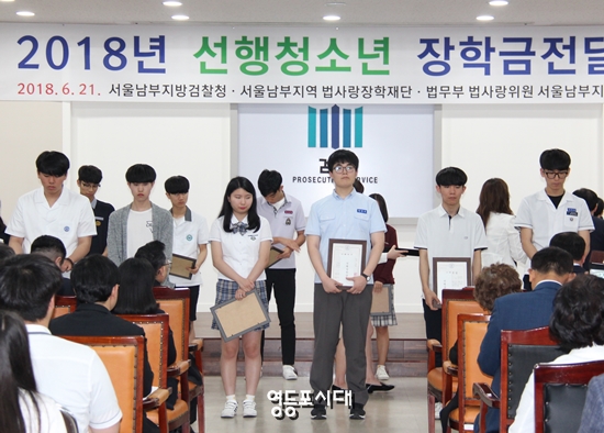 서울 남부지역연합회는 21일 오후 검찰청 대강당에서 “2018년 선행청소년 장학금 전달식”을 거행했다.
