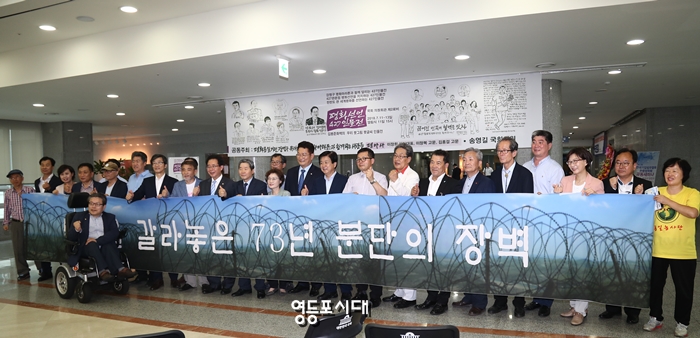 “마라톤, 평화, 문화가 어우러져... 평화 운동이다” 평화통일기원 강명구 유라시아평화마라톤과 함께하는 사람들(아래 평마사)과 송영길 민주당 의원실이 11일 오후 국회 의원회관 2층 로비에서 “427 평화 얼굴 전 국회전시회”를 개최했다.