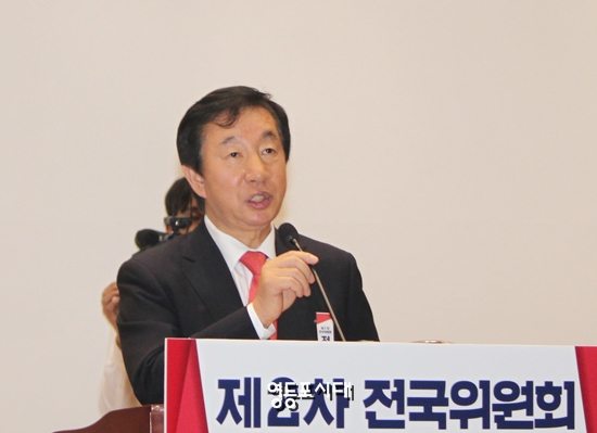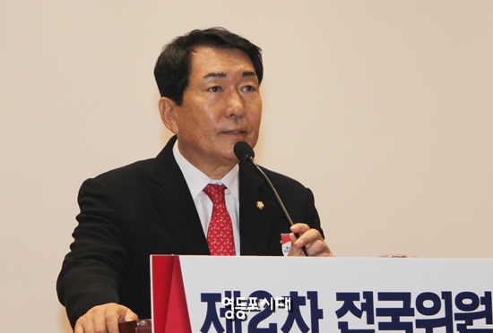 전국위원회의에 앞서 안상수 전국위원회 의장(오른쪽 사진)은 “자유한국당은 선배들이 세계에서 가장 못사는 나라에서 내로라하는 대한민국을 건립을 해왔지만 저반의 사정으로 저희가 대단한 어려움에 부닥쳐있다”면서 “대통령은 탄핵이 됐고, 두 분의 대통령이 구속된 엄중한 상황 속에서 6.13 선거에서는 국민들한테 따가운 질책을 받는 상황이다”고 자유한국당이 현재 처한 상황을 설명했다. 안상수 전국위원회 의장은 이어 “오늘 모처럼 힘들게 자리 함께한 만큼 여러 가지 생각들이 있겠지만 당의 새로운 발전을, 재도약을 위해서 힘을 모아주시는 좋은 전국위원회가 되기를 기원한다”며 김병준 혁신비상대책위원장 선출에 협조해 줄 것을 에둘러 당부했다.