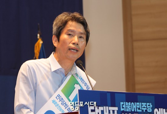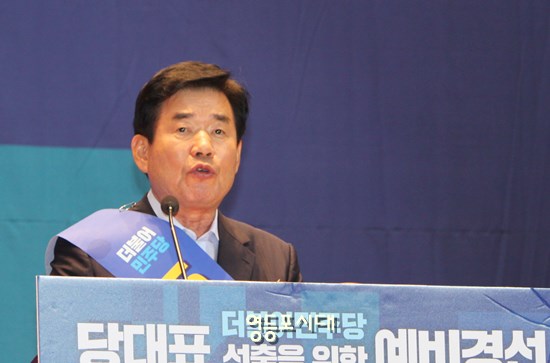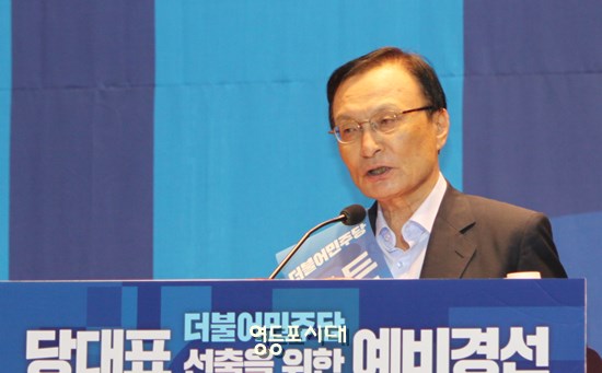이해찬 후보(오른쪽 사진)는 “문재인 정부의 성공을 뒷받침하겠다”고 밝히고 “경험 많은 자신이 당의 역량을 모아 대통령을 굳건히 지켜내겠다. 대통령의 힘만으로는 어렵다”며 “민주당이 우뚝 서야 한다”고 강조했다.