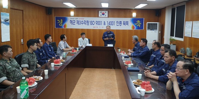 해군 3함대 3수리창은 7월 31일 오후 국제표준화기구 품질, 환경경영시스템 인증을 동시에 획득했다고 밝혔다.