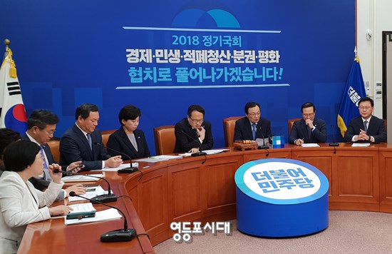이해찬 대표는 오늘부터 DMZ 유해 발굴이 시작되는 것과 관련 “격전을 치렀던 곳의 유해를 발굴하기 때문에 여러 나라에서 희생된 유해가 잘 발굴될 수 있도록, 또 발굴하는 과정에서 불상사가 생기지 않도록 조심스럽게 만전을 기해줄 것”을 당부했다. 이 대표는 “10월 4일에 10.4정상선언 기념식을 하기 위해서 여러 대표단을 구성해 방북할 예정이다”고 밝히고 “제가 공동대표 단장으로 기념행사를 잘하고 남북간 교류가 잘 이뤄질 수 있도록 대화를 많이 하고 돌아오겠다”고 강조했다. 홍영표 원내대표 남북군사합의를 비판하는 자유한국당을 향해 “한반도 평화를 앞당기기 위한 ‘남북 군사합의’를 NLL 무력화와 무장해제라고 왜곡하고 평화를 위한 노력에는 무조건 반대만 한다”고 비판하고 “자유한국당은 NLL 무력화라고 얘기할 자격이 없다”고 직격탄을 날렸다. 홍영표 원내대표는 2012년 남북정상회담 대화록 파문을 상기시키고 “정략적 목적을 위해 서슴없이 전쟁의 공포를 이용, 우리 군을 위험에 빠뜨렸던 것이 자유한국당의 역사이다”며 “얼마 전 ‘공작’이란 영화에서 재조명됐듯이 1997년 이른바 ‘총풍사건’을 일으킨 세력이 자유한국당의 전신인 한나라당이다”고 일침을 가했다. 홍 원내대표는 “심재철 의원은 47만 건의 국가기밀자료를 불법 유출한 범죄행위를 저질러놓고도 여전히 ‘잘못한 것이 없다’고 발뺌하고 있다”고 주장하고 “심재철 의원의 변명이 끝이 없다며 ”기초적인 검증도 없이 청와대 업무추진비 명세에 문제가 있다고 주장하고, 거짓말로 밝혀지면 구차한 변명만 늘어놓고 있다”고 비판했다. 홍영표 원내대표는 “청와대 업무추진비 내역을 부각하면서 심재철 의원이 감추려는 것이 있다”고 주장하고 “바로 국가 기밀자료 유출 행위라는 본질이다”고 비판하고 “심재철 의원은 국가 안보에 치명타가 될 기밀자료를 무수히 많이 빼돌렸다”고 주장했다. 홍 원내대표는 “대표적인 것이 대통령 경호처의 거래명세다”며 자료를 외교부와 병무청의 보안시스템 관리업체 등을 일일이 열거하고 이를 빼돌렸다고 한다”며 “하나같이 국가 안보와 정부 운영에 치명타가 될 자료들이다”고 강조했다. 홍영표 원내대표는 “특히 심재철 의원이 대통령 경호처에 통신장비를 공급하는 업체 정보까지 확보했다는 것은 도저히 묵과할 수 없는 범죄이다”며 “심재철 의원이 지금 당장 해야 할 일은 불법 유출한 자료를 즉각 반환하는 것과 검찰에 출두해 국가기밀 자료를 빼돌려서 어디에 활용했는지 제삼자에게 유출했는지 소명하는 일이다”고 강조했다. 박주민 최고위원은 9월 30일 고위 법관들에 대한 첫 압수수색이 진행된 것과 관련 “사법 농단 수사에 있어서는 의미 있는 진전이라 할 것이다”라면서도 양승태 전 대법원장의 경우, 관용차가 아닌 개인차에만 압수수색 영장이 발부되었다”고 지적하고 “그 내용을 자세히 살펴보면 여전히 의심스럽고 실망스러운 부분이 있다”고 밝혔다. 박주민 최고위원은 일본 욱일기에 관해 그 내력을 상세히 설명하고 “일본은 오는 10일 제주 해군기지에서 열리는 국제 관함식에 욱일기를 게양한 채 참석하겠다고 밝히고 있다”며 “과거에 대한 제대로 된 사과나 청산 없는 일본은 이번 국제관함식에서 욱일기를 달지 않고 참석하는 것부터 시작해 일본 군국주의에 대한 반성과 사과를 했으면 한다”고 일침을 가했다. 박광온 최고위원은 자유한국당 심재철 의원의 청와대 자료 87만 건 정도를 내려받고 그 일부를 유출한 것과 관련 “국가기밀 불법 탈취 진상은 명백하다”고 주장하고 “조속히 관련 자료를 반납하고 심재철 의원과 자유한국당은 국민들께 사과하고 검찰 수사에 충실히 응하는 것이 유일한 해법이다”고 목소리를 높였다. 박광온 최고위원은 “제주 군함식과 관련해 언론에서는 용어 정리를 제대로 해주셨으면 한다”며 “일본 욱일승천기는 일본에서 부르는 말이고 전범기가 정확할 것이다”며 “나치 깃발을 전범기라 부르듯이 명확하게 규정하는 것이 필요하다”고 주장했다. 박 최고위원은 “일본 해군이 욱일기를 전범기로 인식한 채 달고 우리 해역에 들어오는 것은 자제해야 한다”고 강조하고 “만약에 전범기를 펄럭이면서 일본 함정이 들어온다면 독일 함정이 나치 깃발을 달고 프랑스 노르망디나 다른 전쟁피해 국가 항구에 들어가는 것과 다를 바 없다고 인식해야 한다”고 비판했다. 박광온 최고위원은 “독일이 끊임없이 사죄하고 있다”고 강조하고 “일본도 이런 역사 인식을 분명히 하고 국제관례대로 자국기와 태극기를 달고 제주항에 들어올 것”을 촉구했다. 김해영 최고위원은 최근 수도권, 특히 서울의 아파트값이 급격하게 상승한 것과 관련해 “경제가 서울에 쏠려있기 때문이다”고 진단하고 “서울과 수도권뿐만 아니라 지방도 살아야 한다”며 “지방이 고사 위기에 있다”고 주장했다. 김해영 최고위원은 “노무현 대통령께서는 지역균형 발전을 꿈꾸셨다. 그래서 많은 공공기관이 이전했다. 하지만 국토균형 발전은 아직도 더딘 실정이다”고 지적하고 “이번 금