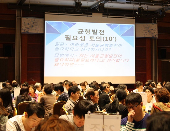 서울균형발전 공론화 1차숙의 권역별토론회는 지난 9월 29일(토) 코엑스 그랜드 볼룸에서 용산구, 성동구 등 14개 자치구 전체 252명 시민참여단 중 246명이 참석한 가운에 열렸다.