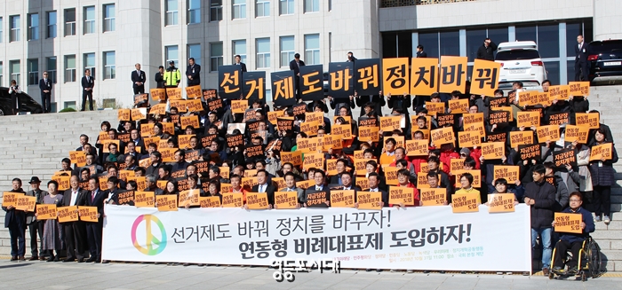 “정치개혁, 국회의원 선거제도 개혁, 연동형 비례대표제 도입” 주장 10월 31일 바른미래당, 민주평화당, 정의당, 민중당, 노동당, 녹색당, 우리미래, 정치개혁공동행동은 국회 본청 계단 앞에서 선거제도 개혁 결의 및 범국민 서명운동 선포 기자회견을 열고 “선거제도 개혁, 연동형 비례대표제 도입” 등을 촉구했다.