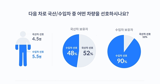 55%의 운전자들이 다음 차로 국산 차 보다 수입차를 선호한다는 조사결과가 관심을 끌고 있다.