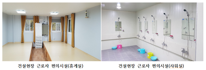 - 샤워장, 휴게실 등 편의시설 확충으로 건설현장 안전사고 예방효과 기대 현재 대부분의 건설현장에서는 이용이 불편한 이동식 간이 화장실만 설치되어 있고 탈의실도 없어 주차장이나 야외에서 탈의를 하는 등 건설현장 근로자들의 근무환경이 열악한 편이다.