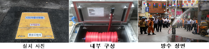 서울시 소방재난본부 관계자는 “전통시장과 같은 좁은 골목길, 밀집 상가 등 소방차 통행 곤란 및 협소한 공간적 장애를 창조적으로 해결하기 위해 도로下 매설식 시민자율소방함 설치하였다.”고 밝혔다.