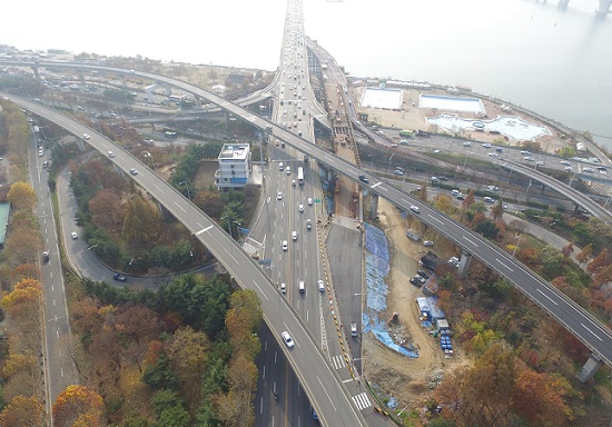 서울시는 11월 29일 임시가교로 통행이 시작되면 북단 접속교와 본교 상판철거, 콘크리트 바닥판 설치 등 성산대교 보수보강을 본격 추진한다고 28일 밝혔다. 특히 성산대교의 많은 교통량을 감안해 공사기간 단축 및 시민불편 최소화를 위한 공법을 채택해 단계별로 추진할 계획이다. 우선 1단계 사업으로 성산대교 북단 접속교와 램프 2개소에 대한 공사를 실시해 ‘19년 6월 완료한다. 2단계 사업은 남단 접속교와 램프 4개소, 접속육교 사업을 실시해 ’19년 12월 완료한다. 1980년 건설된 성산대교는 연장 1,455m, 폭 27m로 내부순환도로(마포구 망원동)와 서부간선도로(영등포구 양평동)를 잇는 한강에서 통행량이 일일교통량 18만대 이상으로 21만대 이상인 한남대교 다음으로 일일교통량이 많은 주요 교량이다.