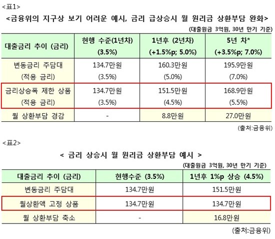 금융위원회(위원장 최종구)가 18일(월) 2종의 “금리상승 리스크 경감형 주택담보대출”을 출시했다. 즉 월 상환액 고정형 주택담보대출과 금리상환형 주택담보대출이다.