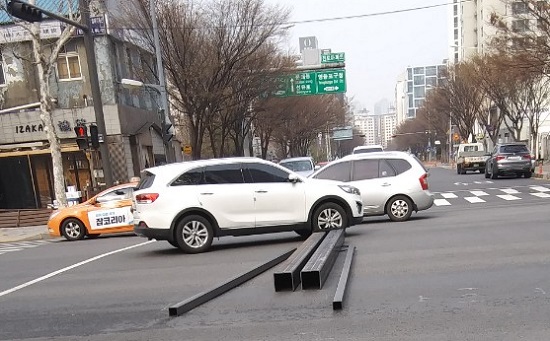 27일 오전 영등포구 당산로 65길 모 사우나 앞에 주행 중이던 검은 승용차가 도로에 떨어져 있던 철물구조물 4개를 피하지 못하고 충돌했다. 문래동에서 당산역 방향으로 주행하던 검은색 승용차가 철물구조물을 피하지 못해 발생한 이날 사고는 충분히 막을 수 있었다.
