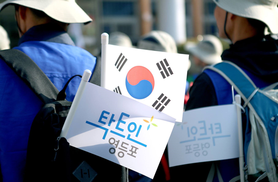 3월 29일 영등포구청을 출발해 3박 4일 동안 충청남도 천안에 있는 독립기념관까지 139km 릴레이 완주를 끌어낸 채현일 영등포구청장이 4월 1일 자신의 페이스북을 통해 밝힌 “탁 트인 국토대장정” 마지막 일지다. 영등포구(구청장 채현일)는 3․1운동과 대한민국 임시정부 수립 100주년을 기념해 특별한 행사를 개최했다. 3․1운동과 대한민국 임시정부 수립 100주년을 기념해 나라 사랑의 정신을 되새기고 직원 간 소통∙화합하는 조직문화를 만들기 위해 야심 차게 기획하고 실행에 옮긴 3박 4일간의 ‘탁 트인 국토대장정’이 바로 그것이다. ‘탁 트인 국토대장정’은 영등포구청, 시설관리공단, 문화재단 직원 등 희망자 153명이 3박 4일 동안 139km를 릴레이로 완주하며 애국선열들을 기리고 직원과 동료 간의 소통과 화합을 다진 아주 특별한 행사다. 3월 29일 영등포구청 광장에서 출정식을 열고 4개 조(대한, 민국, 독립, 만세)로 나누어 시작된 “탁 트인 국토대장정”의 서막은 ‘대한’ 조가 열었다. ‘대한’ 조는 영등포구청 광장을 출발해 안양시청까지 약 24km 행군을 마치고 ‘민국’ 조와 교대했다. 이후 ‘민국’ 조 38km, ‘독립’ 조 38km, ‘만세’ 조 39km 등 총 139km를 세 개조가 릴레이로 완주하며 ‘탁 트인 국토대장정’을 마쳤다. 채현일 영등포구청장과 윤준용 영등포구의회 의장, 권영식 부의장, 고기판 의원 등 관계자도 일정에 맞춰 구간을 선택해 완주하며 대원들을 응원하고 행군 중 제암리 3‧1운동 순국기념관과 고덕면 계루지에 위치한 민세 안재홍 선생(해방 전후 시기 대표적인 언론인 중 한 명)의 생가를 방문해 그의 정신을 기리고 걸으면서 쓰레기를 줍는 플로깅 활동을 펼쳤다. 4월 1일 마지막 주자로 나선 ‘만세’ 조는 평택 소사벌레포츠타운을 출발해 천안 삼거리공원을 거쳐 총 39km를 완주, 독립기념관에 도착하면서 ‘탁 트인 국토대장정’의 대미를 장식했다. 채현일 구청장은 천안 직산역에서 합류해 최종목적인 독립기념관까지(21km) 대원들과 함께 걸었다. 채현일 구청장과 주자들은 도착 후 완주기념식을 개최하고 유관순 열사의 생가를 방문해 서부해당화를 심으며 유관순 열사의 꽃처럼 고귀한 희생과 애국심을 기렸다. 완주기념식에는 양승조 충남도지사와 이준식 독립기념관장 등이 참석했다. 채현일 영등포구청장은 4월 3일 SNS를 통한 본지와의 인터뷰에서 “직원들과 함께 거닐며 서로를 더욱 이해하고 공감하는 값진 경험이었다”고 밝혔다. 채 구청장은 이어 “생동감 있는 조직문화와 소통, 배려”를 강조하고 “서로를 존중하는 문화 확산을 위해 최선을 다하겠다”라고 덧붙였다. 채현일 구청장은 4월 2일 자신의 페이스북에 “‘탁 트인 영등포’가 대한민국의 역사를 만든다!”라며 ‘탁 트인 국토대장정’의 의미와 뜻을 전달한 바 있다. 한편 채현일 구청장은 5일 국토대장정 때 천안 독립기념관에서 대장정 완주기념으로 받은 ‘단풍나무’를 독립기념관과 유관순열사유적지로부터 운반된 흙을 사용해 당산공원에 심고 그 아래 영등포 100년 미래의 소망을 담은 ‘타임캡슐’을 매설했다.