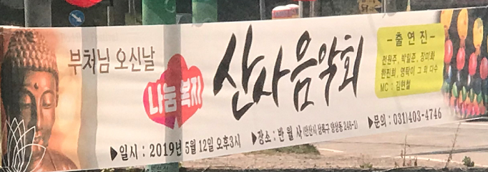 5월 12일 부처님 오신 날을 맞이하여 봉축 행사와 함께 음악과 함께 어우러지는 산사음악회을 개최하는 사찰이 있어 관심을 끌고 있다.