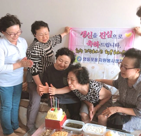영등포동 주민센터(동장 조경자)는 영등포동 자원봉사연합회와 함께 12월까지 홀몸 어르신 180명에게 ‘찾아가는 행복 생신상 차림’ 사업을 통해 이웃의 따뜻한 마음을 전달한다.