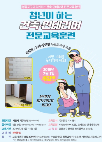 영등포구(구청장 채현일)는 교육을 통해 이론과 실습뿐 아니라 관련 기능사 자격증 취득, 취업 면접 실습, 관련 기초 법률 등을 폭넓게 배울 수 있는 청년건축학교 수강생을 27일까지 모집한다고 12일(수) 오전 밝혔다.