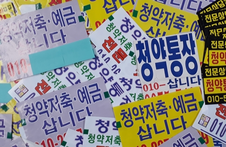 ‘청약통장 삽니다’라는 전단을 붙여 광고하며 청약통장을 사들이거나 불법 거래에 관여한 22명이 주택법 위반 협의로 입건됐다.