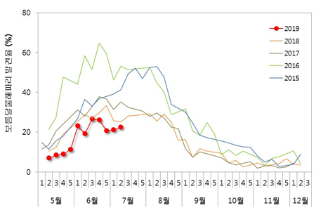 특히, 여름에는 바닷가 방문객이 증가하고 독성 해파리도 급증하는 시기인 만큼 피해가 발생하지 않도록 유의해야 할 것으로 보인다. 7월 18일(목), 행정안전부(장관 진영)는 “우리나라 주변 바다의 온도가 높아지면서 독성 해파리 출현으로 인한 피해가 증가하고 있다”며 주의를 당부했다. 국립수산과학원에 따르면, 우리나라 연근해에서 많이 출현하는 독성 해파리는 8종이며, 그중 노무라입깃해파리와 보름달물해파리가 가장 흔하게 나타난 것으로 밝혀졌다. 독성 해파리는 8종은 노무라입깃해파리, 보름달물해파리, 유령해파리, 작은부레관해파리, 야광원양해파리, 커튼원양해파리, 작은 상자해파리, 기수 식용해파리 등이다. 특히 보름달물해파리는 인천, 경기, 충남 등 제주도를 제외한 전 지역에 출현하고 있는 것으로 나타났다. 독성 해파리의 발견율은 여름철(7~9월) 기간 중 피서철인 7월 3주 차부터 8월 5주 차까지 높게 나타났다. 노무라입깃해파리는 7월 말부터 8월 초까지 많이 나타나고 보름달물해파리는 8월 말에 주로 발견되고 있어 방문하는 시기에 자주 출현하는 해파리를 미리 알아두고 대처방법을 숙지하면 도움이 될 것으로 보인다. 해파리 쏘임 사고로 인한 피해를 예방하기 위해서는 부유물이나 거품이 많은 곳, 물흐름이 느린 곳에 입수할 때는 자세히 살펴보고 죽은 해파리를 발견하더라도 독이 남아있을 수 있으므로 절대 접촉하지 말아야 한다. 또 해파리에 쏘였을 때 바로 구급차를 부르고 구조 요원에게 도움을 청하는 것이 좋다. 독성 해파리에 쏘이면 나타나는 증상은 홍반을 동반한 채찍 모양의 상처가 생기며, 통증‧발열 등을 유발하고 호흡곤란과 신경마비 증상까지 초래할 수 있다. 피부에 달라붙은 해파리나 독침은 맨손으로 떼어내지 말고 주변의 물건이나 장갑을 이용하여야 하며, 피부에 독침이 박힌경우 플라스틱 카드 등을 이용해 독침이 박힌 반대 방향으로 긁어내고 상처 부위를 바닷물이나 식염수로 10분 이상 씻어내야 하며, 이때 맹독성 입방해파리에 쏘인 경우를 제외하고는 식초로 씻으면 역효과가 날 수 있으므로 주의해야 한다.