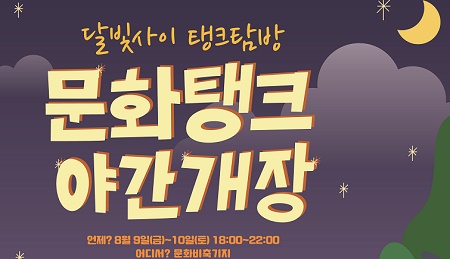 8월 9일(금)과 10일(토) 양일간 실내탱크를 오픈하는 문화탱크 야간개장 <달빛사이 탱크탐방>이 운영된다.