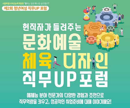 서울시와 서울시 여성 능력 개발원은 8월 22일(목) 오후 1시 30분부터 오후 5시까지 청년문화공간JU동교동(서울 마포구 홍대입구역)에서 ‘제2회 청년여성 직무업(Up) 포럼’을 개최한다고 밝혔다. 곽현주 패션디자이너의 취업전략 미니특강과 예체능 분야 전문가 멘토와 함께하는 소규모 그룹 멘토링, 1:1 현장 컨설팅을 통한 진단 및 취업진로 설계 등이 진행된다. 시는 청년여성들이 구직활동을 하는데 가장 필요로 하는 부분이 ‘희망분야의 직무 관련 실전정보’인 만큼 이를 세부적으로 돕기 위해 예체능 분야에만 집중해 이번 포럼을 준비하게 됐다고 밝혔다. 먼저 이날 13시 30분~14시까지는 곽현주 패션디자이너의 취업전략 미니특강이 진행된다. 예체능 분야 취업을 희망하는 청년여성에게 응원의 메시지도 전할 예정이다. 이어 14시~16시까지 5개 직무 분야별 전문가 멘토의 맞춤 직무특강이 진행된다. 마지막으로 16시~17시까지 1대1 현장 컨설팅을 통한 진로 설계를 진행한다. 취업을 준비 중인 만34세 이하 서울시 거주 또는 서울시 소재 학교의 청년여성이라면 참여 가능하며, 오는 8월 9일(금)까지 서울시여성능력개발원 홈페이지에서 선착순 100명(5개 직무별 각 20명)을 접수 받는다. 조영미 서울시여성능력개발원 원장은 “청년여성들이 구직 활동하는데 있어 희망직무에 대한 현장 전문가 멘토의 조언을 목말라했다”며, “이번 청년여성 직무UP포럼은 문화예술, 체육, 디자인 분야 전문가 멘토들의 컨설팅을 받을 수 있는 좋은 기회가 될 것”이라고 말했다.