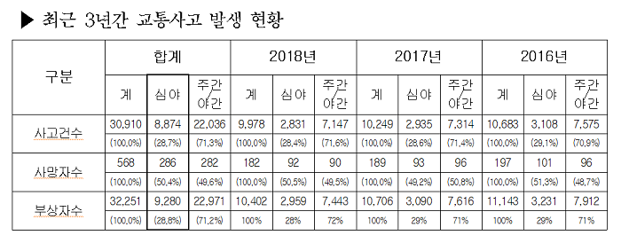 서울시는 2013년 8월부터 오전 7시~밤 10시까지 시행해 온 ‘시민 신고제’를 19일(목)부터 24시간으로 확대한다. 서울시는 교통법규 위반 ‘시민 신고제’ 24시간 확대 운영계획에 대해 8월 29일부터 (9월 18일까지) 행정예고 중이다. 시는 화재 시 소방 활동이 신속하게 이뤄질 수 있도록 지난 5월 30일 1차로 소화전‧소방차 통행로에 대한 ‘시민 신고제’를 24시간으로 확대한 이후 노후 주택·건물 등으로 주차시설이 부족한 여건을 고려해 보도·횡단보도·교차로·버스정류소에 대한 ‘시민 신고제’는 이번에 확대했다. 신고 대상은 서울 시내 전역의 ▲소화전 ▲소방차 통행로 ▲보도 ▲횡단보도 ▲교차로 ▲버스정류소, 6개 지점의 불법 주정차 차량이다. 6대 지점은 「도로교통법」에 따라 비워둬야 하는 불법 주정차 절대 금지구역들이다. 시는 낮보다 심야시간대 차량 주행속도가 상대적으로 빠르고, 불법 주정차량으로 운전자 시야가 방해를 받을 때 인명피해를 수반하는 교통사고 발생 가능성이 많은 만큼 보행자 안전을 위해 운영시간을 확대하게 됐다고 배경을 설명했다. 도로교통공단의 ‘교통사고 현황’에 따르면 2016년부터 2018년까지 최근 3년간 서울 시내 심야시간대(22시~다음날 08시) 교통사고 사망자 수는 총 286명인 것으로 나타났다. 전체 사망자 568명의 50.4%를 차지하는 수치로, 심야시간대 사고 시 인명피해가 크다는 것을 의미한다.