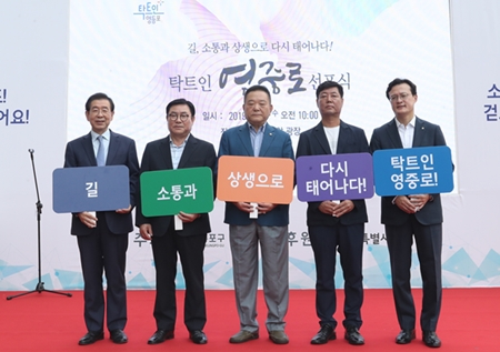 특히, 채 구청장, 박 시장, 상인대표, 주민대표, 거리 가게 대표가 함께 무대에 올라 ‘상생 선언’을 제창하며 새로운 영중로 시대를 알렸다.