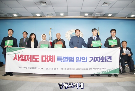 민주당 이상민 의원실과 사형제도 폐지 종교•인권•시민 단체 연석회의(아래 이상민 의원실과 시민 단체)는 10일 국회 기자실에서 ‘사형제도 대체 특별법 발의’ 기자회견을 열고 “사형제도 폐지는 이미 국제사회의 거스를 수 없는 흐름이다”라고 주장했다. 이상민 의원실과 시민 단체는 이어 “오늘 국회에서 민주당 이상민 의원의 대표 발의로 75명의 여•야 의원들이 서명한 사형제도 폐지 특별법안이 발의된 것은 국회가 스스로 비준한 국제 협약을 지키기 위한 당연한 절차이기도 하다”며 “사형제 폐지를 위한 간곡하고 단호한 권고를 국회에 전달한다”라고 밝혔다. 이상민 의원실과 시민 단체는 “모든 법률에서 사형을 폐지하고 대한민국이 완전한 사형폐지국이 되어 아시아와 전 세계의 인권운동을 이끌 인권선진국이 될 수 있도록 결단을 해 달라”고 촉구했다. 이상민 의원실과 시민 단체는 “어떠한 순간에도 국민의 생명을 함부로 여기지 않은 대한민국의 모습으로 사형제도를 폐지라는 전 세계적 부름에 응답해 주길 기원한다”라며 “완전한 사형폐지국가로 함께 가자”라고 호소했다. 대한민국에서 사형이 집행된 것은 21년이 넘었다. 제15대 국회부터 제19대 국회까지 총 일곱 번에 걸쳐 사형제도 폐지 특별법이 발의되었지만, 단 한 번도 법제사법위원회의 문턱을 넘지 못했다. 사형제 폐지 공론화는 과거 독재 정권 시절, 억울하게 사형이 집행된 사형수에 대한 재조사 작업이 이뤄지는 과정에서 시작됐다. 우리나라는 정치적 이유로 단행된 사형집행이 27%에 달해 다른 나라에 비해 사형제도가 정치적으로 악용된 선례가 많다는 것이 중론이다. 헌법재판소 역시 2010년 2월 사형제도가 헌법에 합당한 제도라고 결론을 내렸다. 그 중요한 근거는 우리나라 국민이 가지고 있는 법 감정 때문으로 풀이된다. 실제로 흉악범죄가 잇달아 발생하면서 사형제 지지의 목소리가 힘을 얻은 것으로 분석된다. 또한, 사형이라는 강력한 처벌이 범죄에 대한 경각심을 높이고 잠재적 범죄자들의 범죄 충동을 억제하여 사회 질서를 바로잡을 수 있다는 믿음도 사형제 지지의 한 몫을 차지하고 있는 것으로 보인다. 사형제 폐지 법안이 20대 마지막 국회의 문턱을 넘을 수 있을지 귀추가 주목된다.