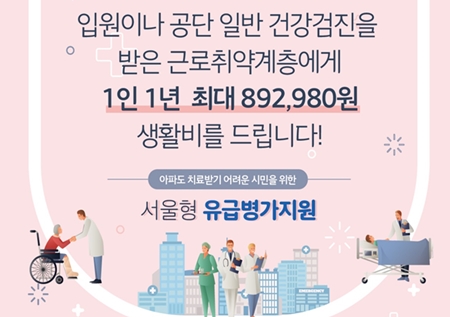 ‘서울형 유급병가’ 제도는 몸이 아파도 생계 걱정에 쉬지 못하는 근로취약계층에게 입원 또는 건강검진 시 생활비를 지원해 주민들의 경제적 안정과 신체 건강을 도모하기 위해 시행한다. 입원하거나 국민건강보험공단의 일반 건강검진을 받으면 서울시 생활임금 기준으로 하루 81,180원을 받을 수 있다. 입원은 최대 10일이고, 건강검진은 1일이다. 정규직 근로자의 유급휴가 수혜율은 74.3%지만 비정규직 근로자의 유급휴가 사용률은 32.1%로 그 편차가 매우 크다. 유급휴가가 없는 저소득 근로자 또는 자영업자는 몸이 아파도 생계 걱정에 진료를 받지 않는 경우가 많아, 장기적으로 봤을 때 사회적 손실로 이어진다. 서울형 유급병가’지원 대상은 근로소득자 또는 사업소득자이면서 국민건강보험 지역가입자 중 지역 내 거주하는 기준 중위소득 100% 이하 근로취약계층이다. 일용직, 특수고용직 종사자 영세자영업자 등이 해당할 수 있다. 신청 자격은 ▲매년 1월 1일 이전부터 신청일 현재까지 서울시 거주자 ▲국민건강보험 지역가입자인 근로소득자 및 사업소득자 ▲2019년 6월 1일 이후 입원 또는 공단 일반 건강검진을 받은 자(암 검진 제외)이다. 선정기준은 실제 소득이 그해 보건복지부에서 고시하는 기준 중위소득 100% 이하에 해당하고, 재산은 2억 5천만 원 이하(금융, 자동차 제외)인 경우다. 기준 중위소득 100% 판정 기준은 1인 가구의 경우 170만 7008원, 2인 가구는 290만 6528원, 3인 가구는 376만 32원, 4인 가구는 461만 3536원이다. 신청을 희망하는 주민은 구 보건소 홈페이지에서 신청서를 내려받아 작성한 후 주소지 관할 동주민센터 또는 건강증진과로 방문하거나 우편, 팩스 등으로 신청할 수 있다.