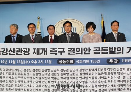 민주당 민평련 회원들의 논의로 시작된 「개성공단·금강산관광 재개 촉구 결의안(대표발의 우원식)」이 여·야 국회의원 157명이 함께 공동 발의한다.