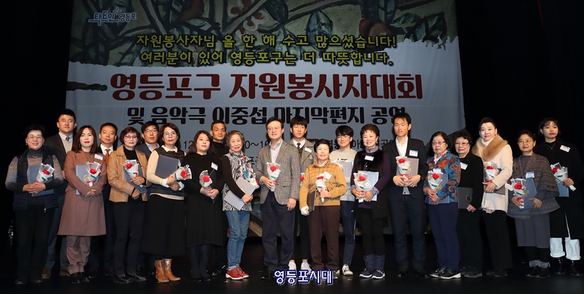 채현일 구청장 “받는 사람에게는 큰 힘이자 삶의 희망” 윤준용 구의회 의장 “다시 일어설 수 있는 희망과 용기” 영등포구자원봉사센터(센터장 김찬숙)는 12월 4일 오후 영등포아트홀에서 ‘2019년 영등포구 자원봉사자 대회’를 개최했다.