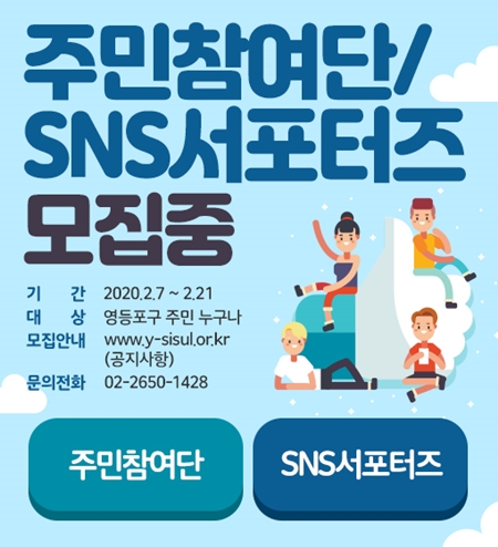 영등포구시설관리공단(이사장 김윤기)이 2월 7일부터 시작한 ‘2020년 주민참여단’과 ‘SNS 서포터즈’를 모집을 2월 21일까지 진행한다.
