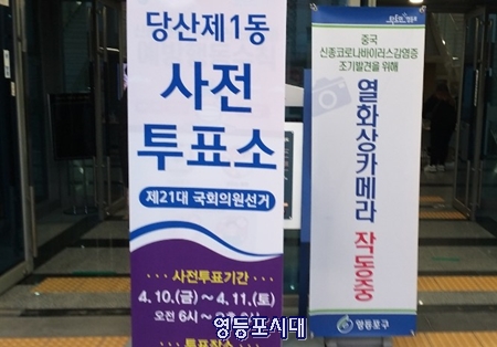 영등포구 역시 영등포아트홀 2층 전시실과 신길3동 주민센터 등 18개 동에서 일제히 투표가 시작됐다. 영등포구는 전체 선거인 수 327,879명 중 15,255명이 투표해 전국평균 4.71%에 조금 못 미치는 4.65%를 나타내고 있다. (12시 기준) 한편 채현일 영등포구청장은 사전투표일을 하루 앞둔 4월 9일 오후 영등포아트홀 전시실에 마련된 당산1동 사전투표소를 방문해 사전투표 모의시험을 참관하는 등 현장을 점검하고 관계자들을 격려했다.