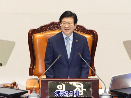 국회는 5일 제379회 국회(임시회) 제1차 본회의를 개최하고 제21대 국회 전반기 국회의장 선거를 시행해 의장에 민주당 박병석 의원(6선)을 여당 몫 부의장에 김상희 의원을 선출했다. 박병석 의원은 총투표수 193표 중 191표를 얻어 제21대 국회 전반기 국회의장으로 당선되었으며 김상희 의원은 188표 중 185표를 받아 선출됐다. 야당 몫 국회부의장에는 미래통합당 정진석 의원이 내정되었지만, 미래통합당이 “오늘 회의는 무료라고 선언”하고 본회의장을 빠져나가면서 정식으로 선출되지는 못했다. 자신을 의회주의자로 소개한 박병석 의장은 여당을 향해 “2004년 열린우리당 시절, 4대 개혁 입법을 일거에 추진하려다 좌절된 것을 기억하실 것이다”라며 “압도적 다수를 만들어준 진정한 민의가 무엇인지 숙고하시기를 권고한다”라고 조언했다. 박 의장은 야당에도 “2008년 가을 세계적 금융위기 당시 야당의 정책위의장이었다”라고 소개했다. 박병석 의장은 이어 “이명박 정부가 다급하게 요청했던 1천억 달러에 이르는 정부 지급보증(안) 국회 동의를 소속 정당의 반대를 무릅쓰고 주도한 적이 있다”라고 밝히고 ““국민은 당의 입장보다 국익을 위해 결단했던 야당, 그런 야당에 더 큰 박수를 보내 주셨다”라며 에둘러 야당의 역할을 강조했다. 미래통합당 소속 시각장애 김예지 국회의원은 안내견 조이와 함께 본회장에 입장해 관심을 모았다. 김예지 의원은 헌정사상 첫 여성 시각장애 국회의원이다. 민주당에 이에 앞서 이날 오전 국회에서 열린 최고위원회의에서 국회법 제5조 3항을 강조하며 제날짜에 개원하겠다는 의지를 분명히 밝혔다. 이해찬 대표는 최고위원회의 모두 발언을 통해 이렇게 밝히고 “미래통합당과 국민의당도 개원 국회에 참석하여 새로운 국회, 새로운 역사, 새로운 관행을 만드는데 함께 해주길 바란다”라며 협조를 당부했다. 김태년 원내대표 역시 “민주당은 오늘 21대 국회 문을 열고 국회법 절차에 따라 본회의를 열고 의장단을 선출하겠다”라고 강조한 바 있다.