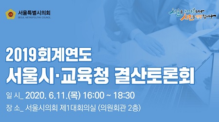 48조원에 달하는 2019회계연도 서울시 및 교육청 결산(서울시 37조 3,260억 원, 교육청 10조 9,680억 원)과 관련하여, 서울특별시의회 결산 심사에 앞서 집행실태를 살펴보고 향후 바람직한 예산운용방향을 논의하기 위한 온라인 결산 토론회가 개최된다.