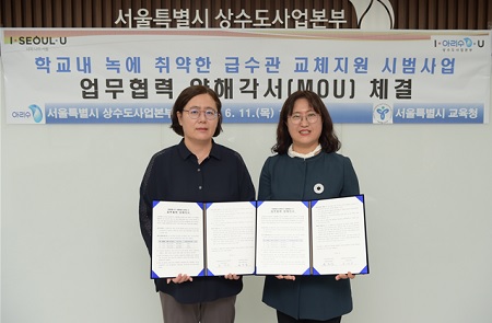 서울시교육청(교육감 조희연)이 서울시상수도사업본부(본부장 백호)와 업무협약을 맺고 ‘학교 내 녹에 취약한 급수관 교체 지원 시범사업’을 공동으로 추진한다.